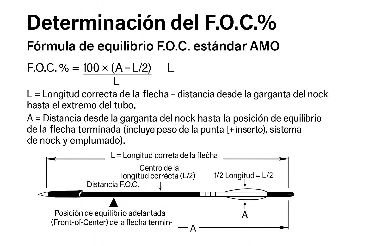Ajuste FOC: subir → puntas/insertos más pesados; bajar → más ligeros. Cambios de FOC pueden exigir spine nuevo y nock tuning.
